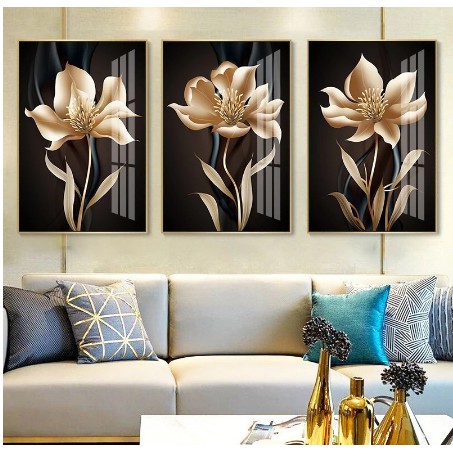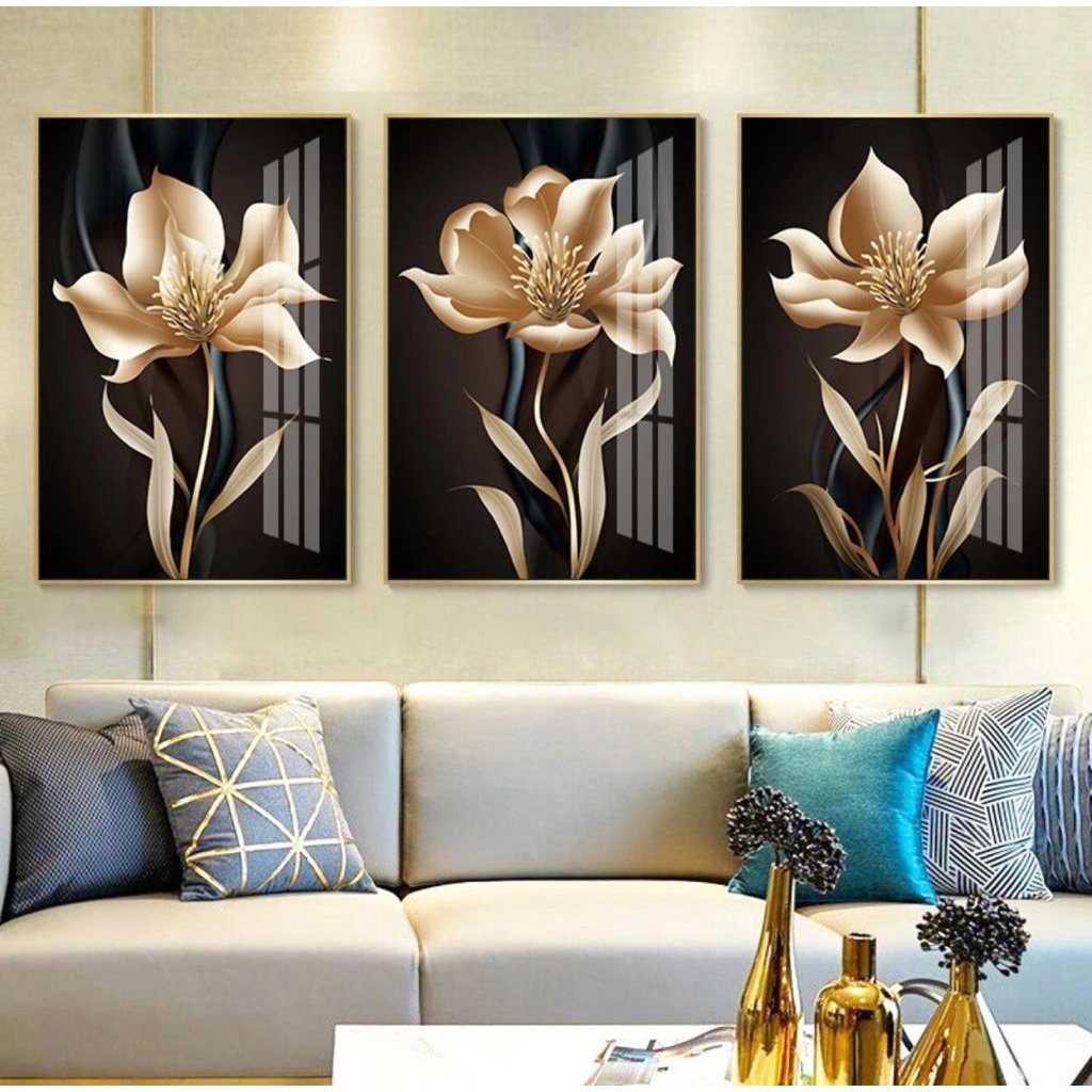KIT QUADRO DECORATIVO 3 PEÇAS PARA SALA QUARTO ESCRITÓRIO FLORES 20x30