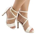 Sandália Salto Alto Fino 9 cm Croco Off White ER395 Sapato Feminino