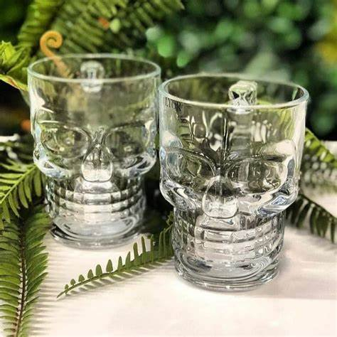 Kit 2 Canecas Taça Chopp De Vidro 500ml Caveira Skull Bar Restaurante Cerveja Design Sofisticado