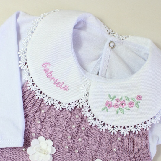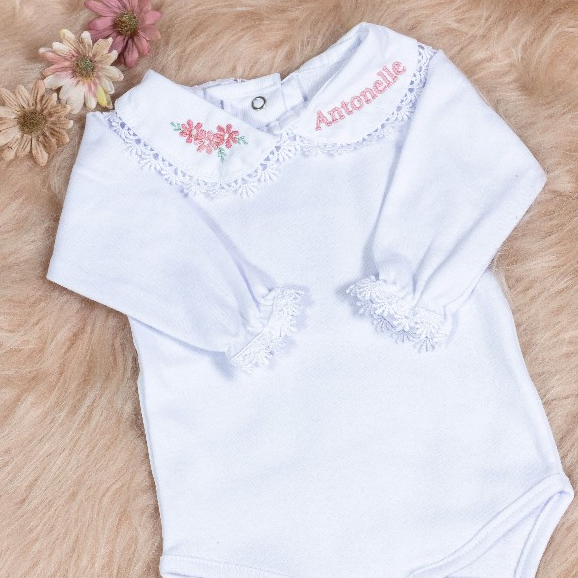 Body Bebê Personalizado Menina 100% Algodão Bordado Ramo de Flores