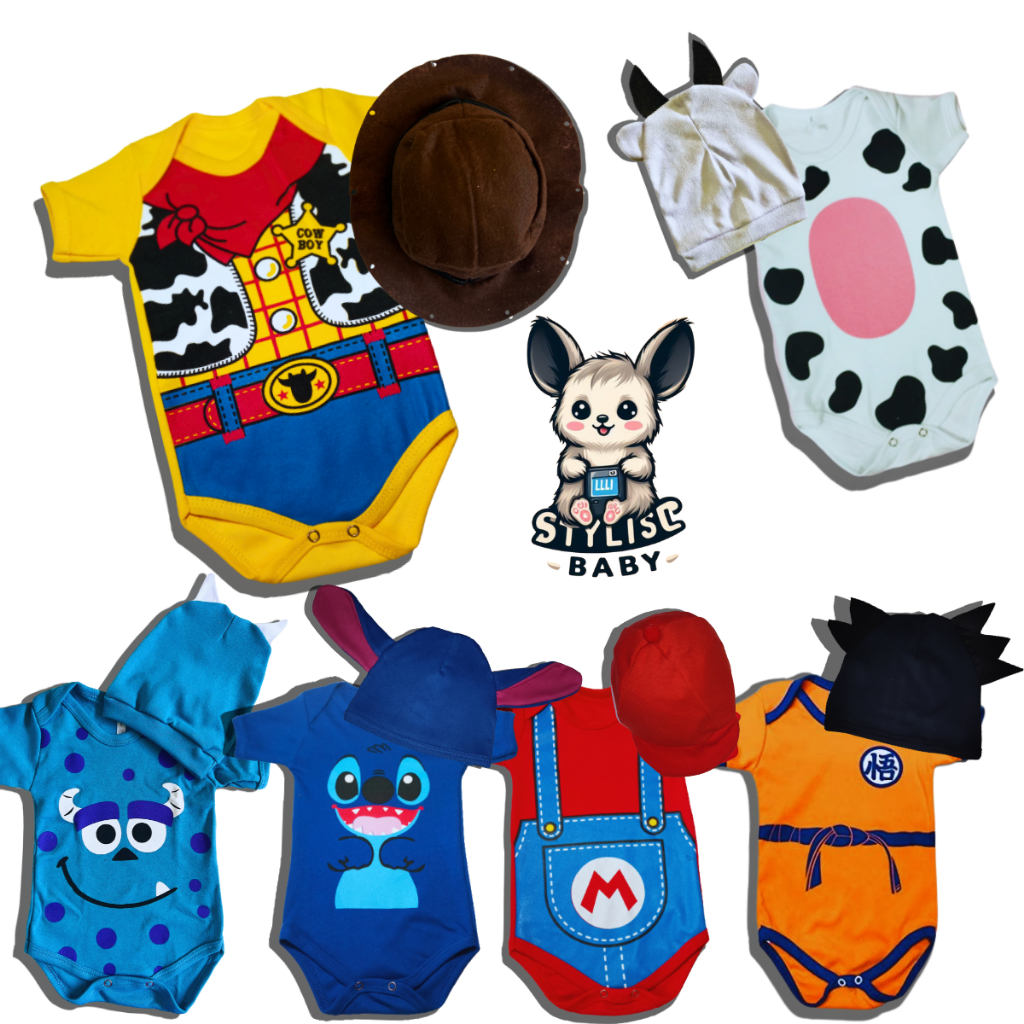 Body bebê temático infantil mesversário | Fantasia personalizada | Suedine 100% algodão Personagens