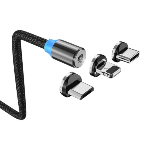 Cabo Carregador Magnético 3 Em 1 Carregamento super rápido de 3A com transferência de dados, função de rotação de 540°
