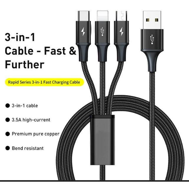 Inova 3 Em 1 Cabo De Dados Cabo Tipo C Usb Carregador Ultra RáPido 1 Metros Resistente Adapta-Se A Todos Os Modelos De Telefone