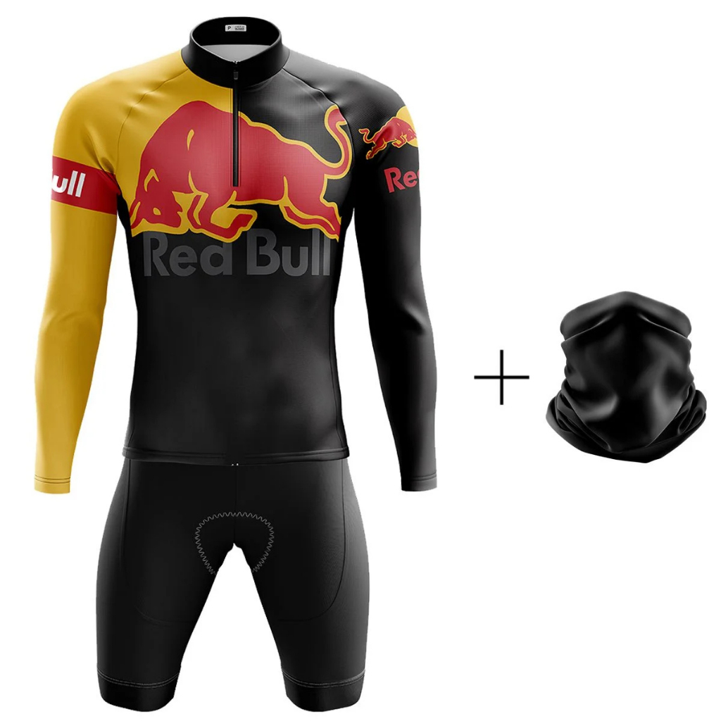 CONJUNTO CICLISMO BERMUDA E CAMISA MANGA LONGA COM BANDANA UV 50+