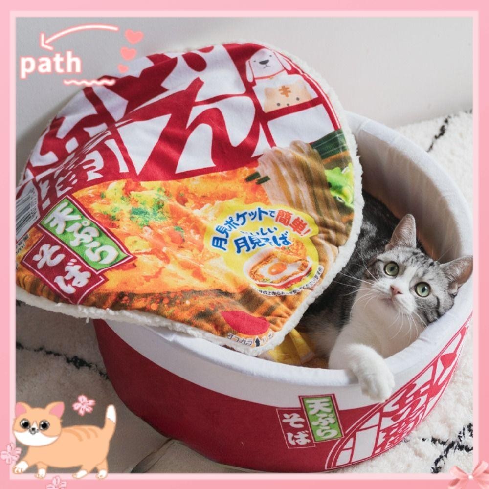PATH Noodle Instantâneo Em Forma De Macarrão Casa De Animais De Estimação Universal Fechada Ramen Fofo Ninho De Gato Canil Quente