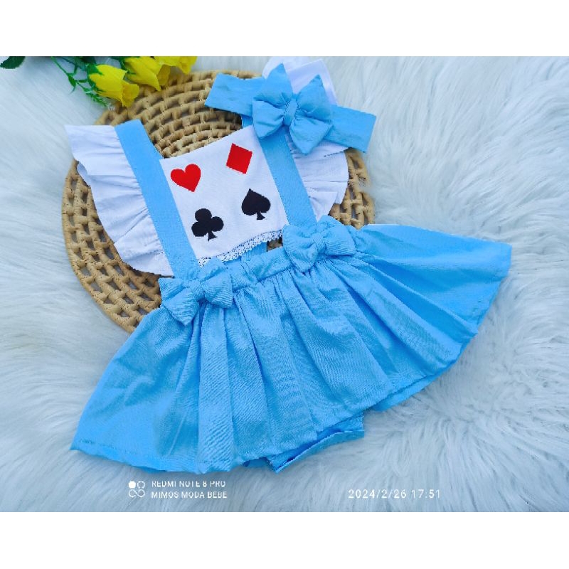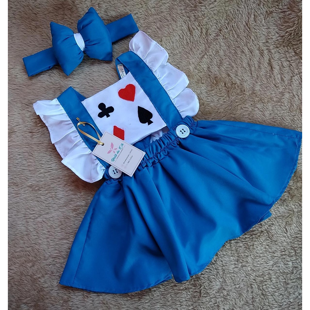 Romper Alice luxo no País das Maravilhas Body Salopete Fantasia Vestido Jardineira Infantil Bebê Menina Baby Bebê Roupa