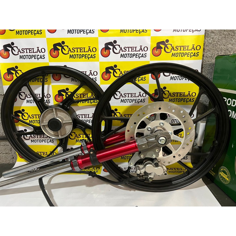 Par Bengala Completa Titan 150 Es Disco 2004 A 2008 + sistema de freio + Par Roda liga leve