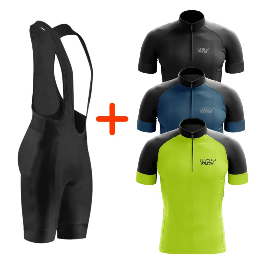 Conjunto Ciclismo Masculino Camisa Way Fresh e Bretelle Forro em Gel Para Bicicleta