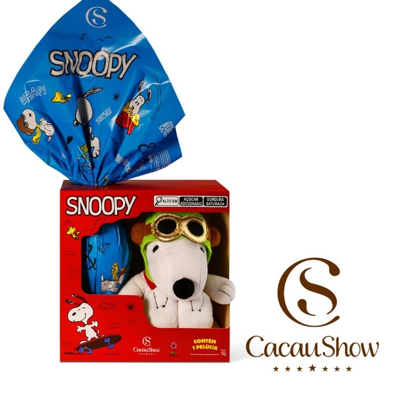 Ovo de Páscoa Snoopy Aviador Cacau Show Pelúcia Presente Infantil Chocolate ao Leite Preto Criança Boneco