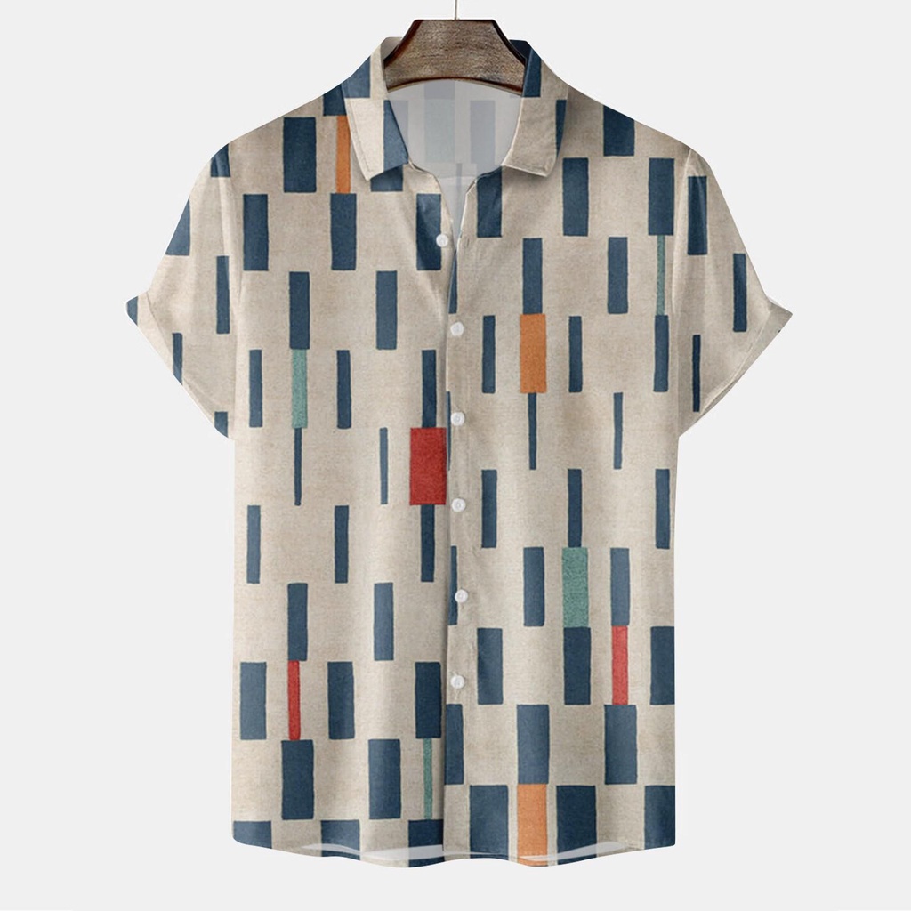 Camisa De Verão Manga Curta Vintage Para Homens Camisas Casuais Harajuku Lapela Com Botão Solto Diário
