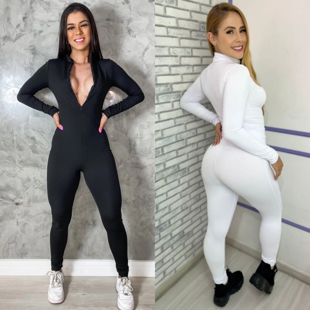 Macacão Feminino Longo Com Ziper Moda Gringa Balada Virginia Blogueira Suplex Gringo Fitnes Academia