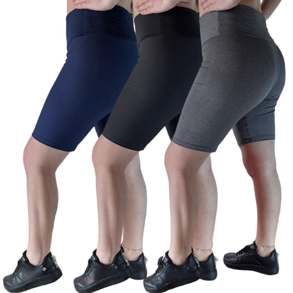 Kit Com 3 Bermuda Fitness Feminina Lisa Roupa De Academia