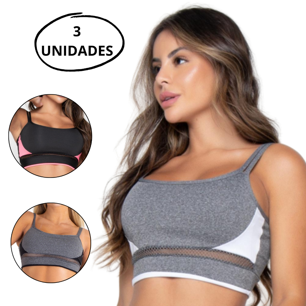 KIT 3 Top Feminino Detalhe em Tela Roupa de Academia Ginástica Crossfit