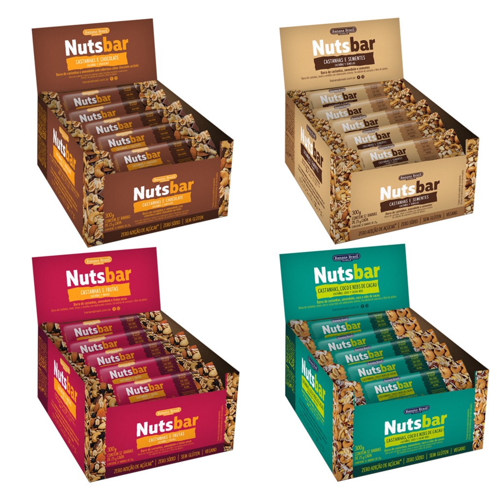 Kit 4 Caixas Barras De Castanhas Nutsbar - 48 Barrinhas