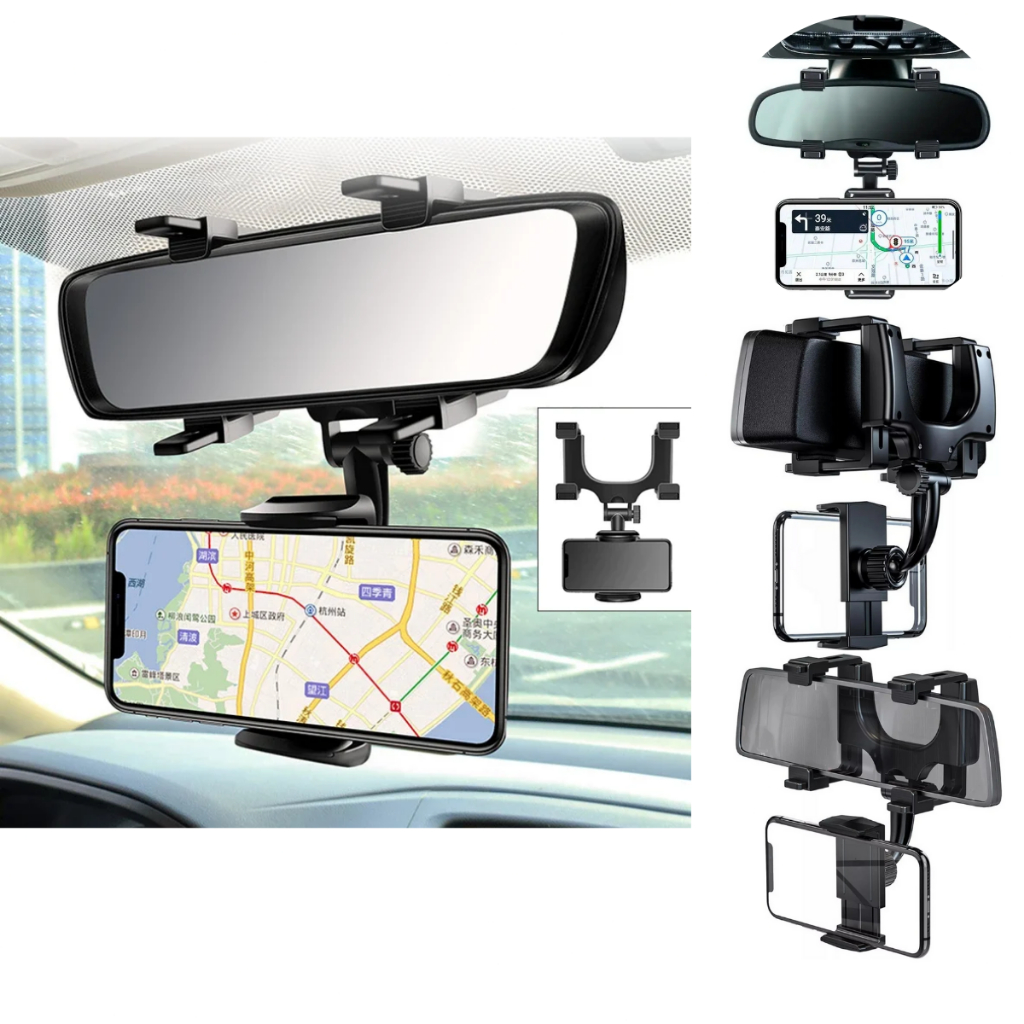 Novo suporte de telefone para espelho retrovisor de 360° para montagem multifuncional no carro e suporte para GPS Suporte giratório universal para telefone no carro, suportes para celular para automóveis