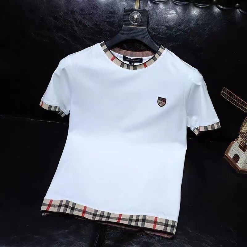 Camiseta bordada na moda Novo Estilo Homens de Manga Curta de Rua Costura Juvenil