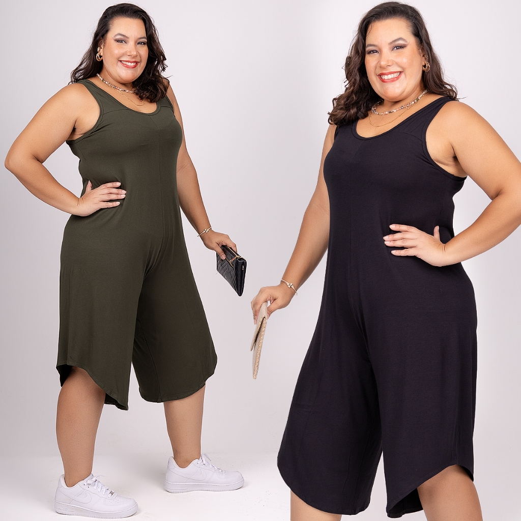 Macaquinho Plus Size Curto de Malha Macacao Roupa Feminino All Curve
