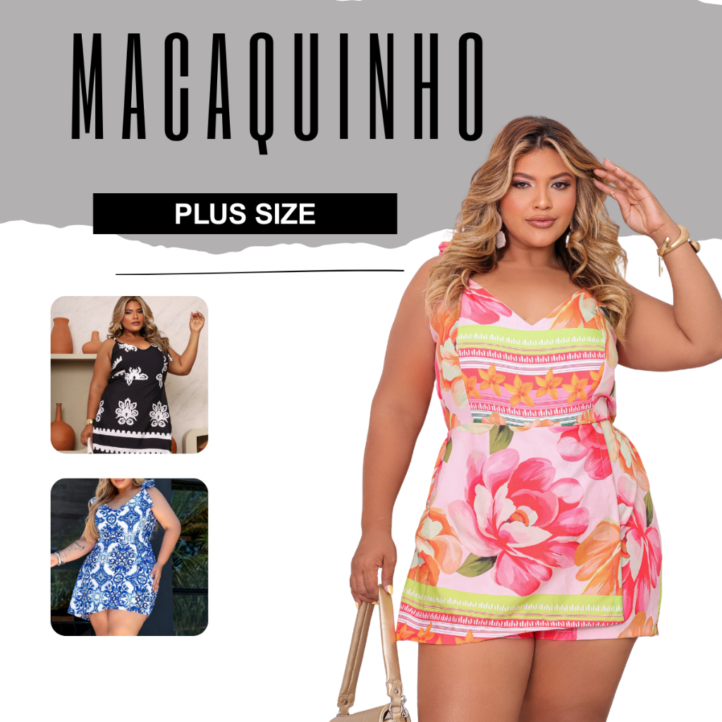 Macaquinho Soltinho Plus Size Feminino Curto Alça larga Elegante All Curve Tendencia Promoção