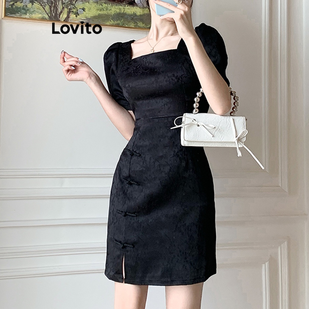 Lovito Vestido Feminino Elegante Com Botões Frontais Lisos E Divididos LNL46179