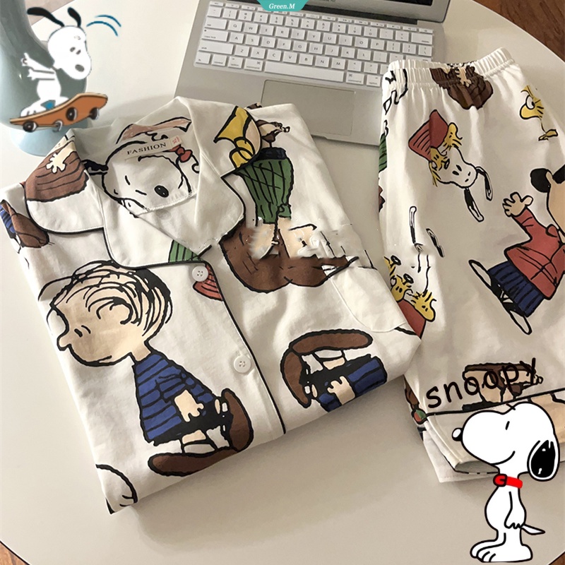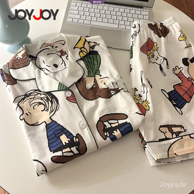 Anime Cartoon Charlie Snoopy Pijamas Feminino De Verão Novos Calções De Manga Curta Conjuntos De Fato De Duas Peças [GM]
