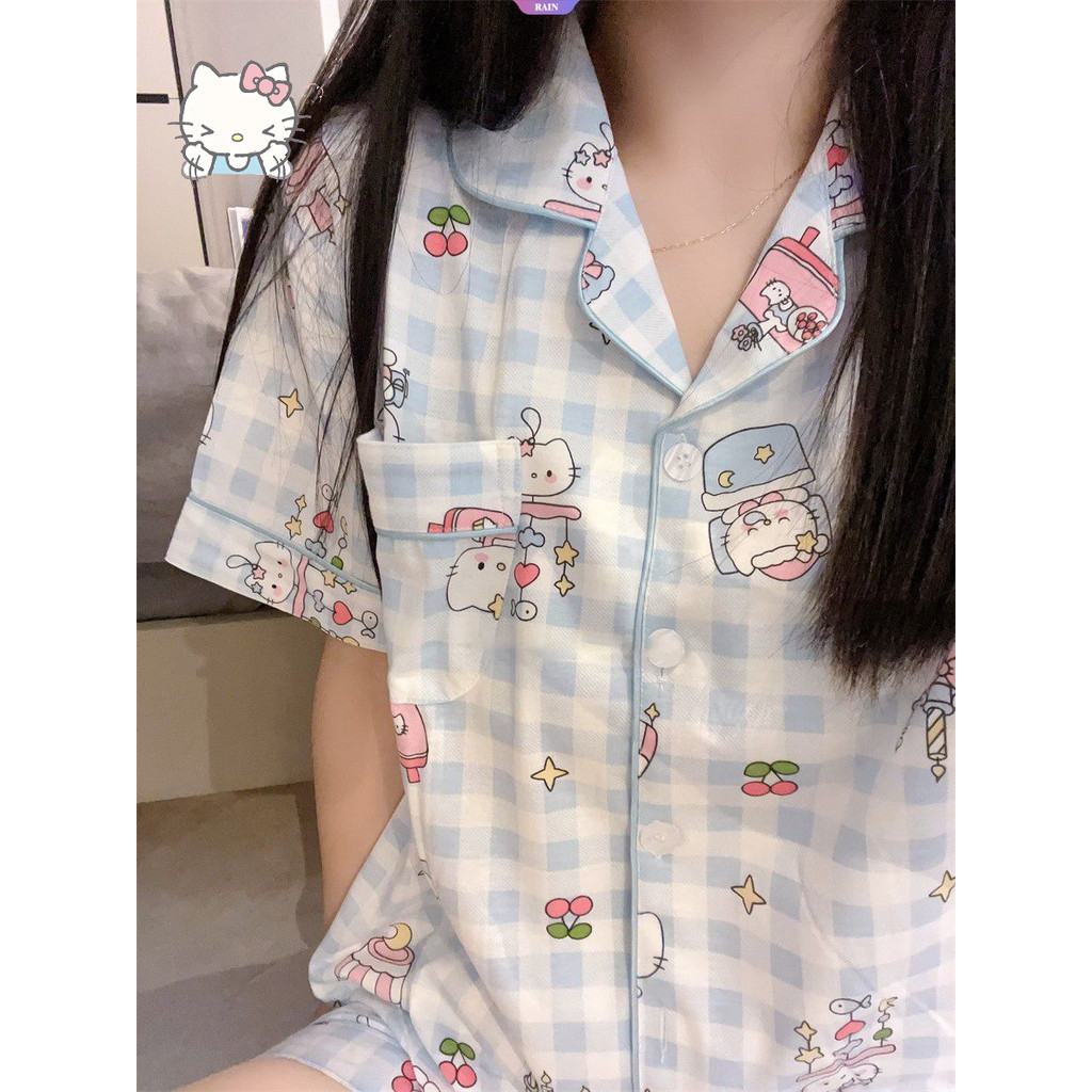 Sanrio HelloKitty Pijamas Feminino De Verão Novo Fato De Roupa De Manga Curta Estilo Japonês Para Estudantes Em Casa [RAIN]