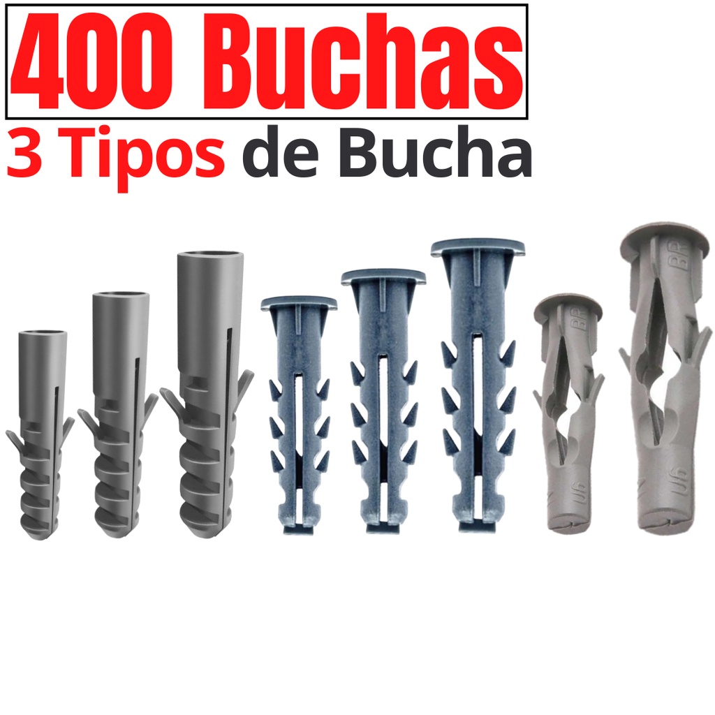 Parafuso e Bucha 5 - 6 - 8 - 10 com Anel 400 Peças Kit Buchas com Parafusos Phillips Combo Bucha com Anel