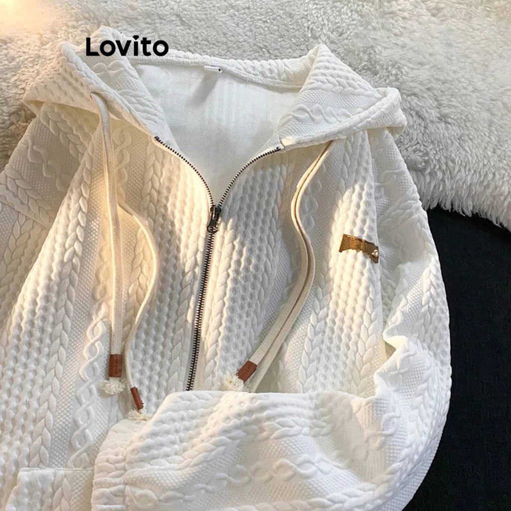 Lovito Casaco de Malha com Acabamento de Gola Redonda e Bolsos Simples Casual para Mulheres LNE13013 (Branco)