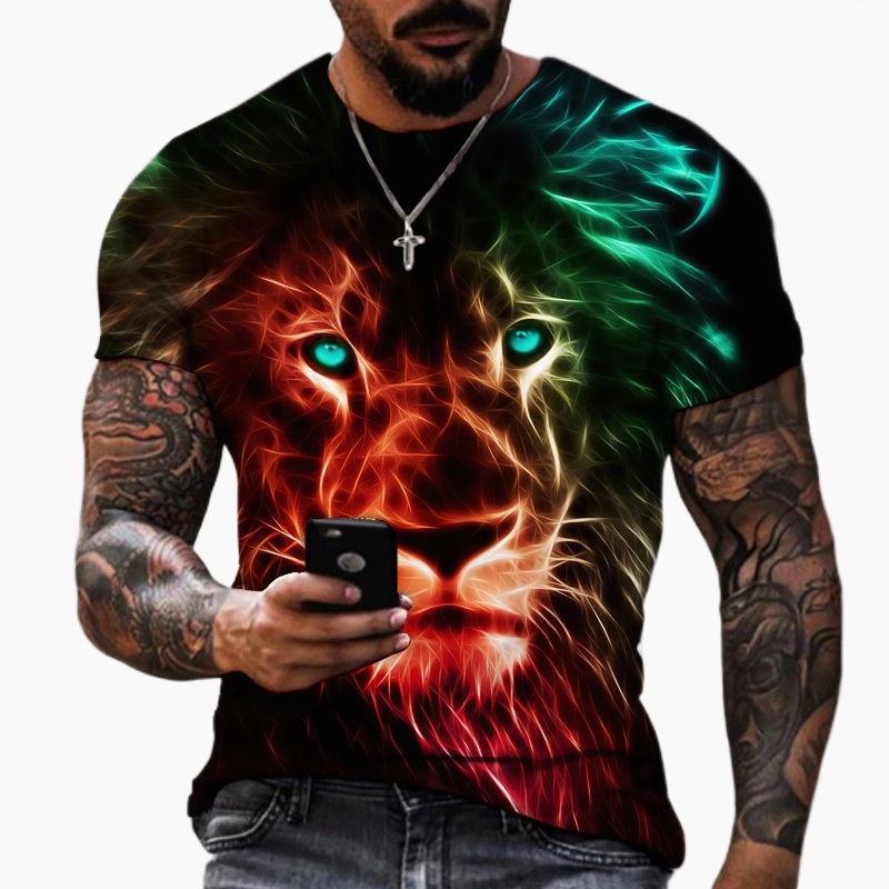 2023 camisetas masculinas impressão 3D camisetas de leão camisas masculinas tamanho grande nova moda estilo de rua de verão Harajuku mangas curtas com gola redonda roupas homens