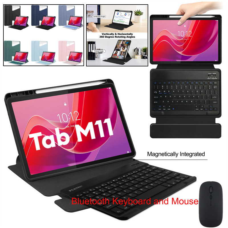 Para Lenovo Tab M11 TB330FU/Xiaoxin Pad 2024 TB331FC Rato De 11 Polegadas Teclado Wilress Bluetooth Destacável Smart Leather 360 Suporte Rotativo Tampa Da Caixa Com Ranhura Caneta
