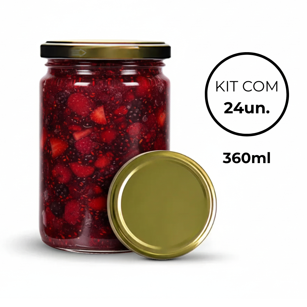 Kit 24 Potes de Vidro Inca 360ml Com Tampa Dourada e Lacres Para Geleias Doces Conservas