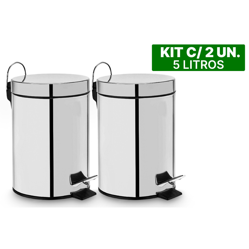 Kit 2 Lixeira Lixo Inox Aço Cesto Resistente Reforçado Leve Balde Removível Pedal Emborrachado 5 Litros