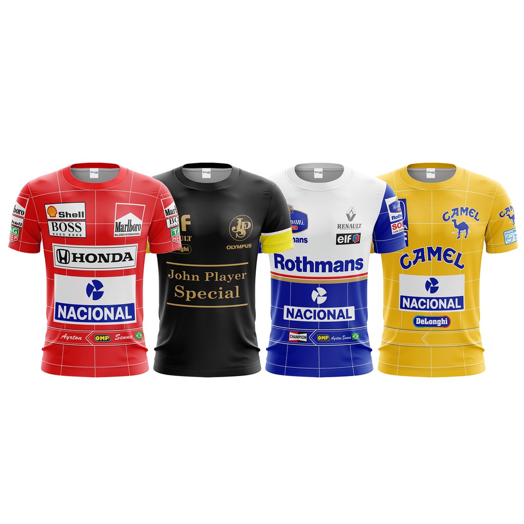 Kit c/ 4 Camisetas Dry-Fit Ayrton Senna Formula 1 Uniforme /Jersey Retrô
