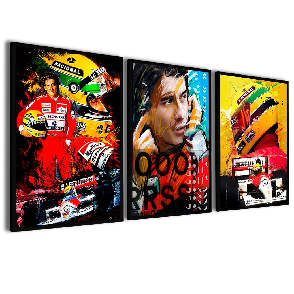 Kit 3 Quadros Decorativos Ayrton Senna Fórmula 1 Piloto