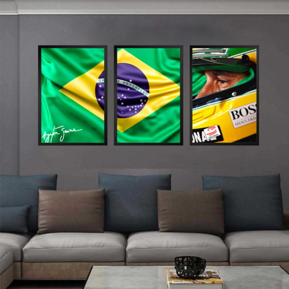 Kit trio quadros decorativos F1 Ayrton Senna piloto Brasil