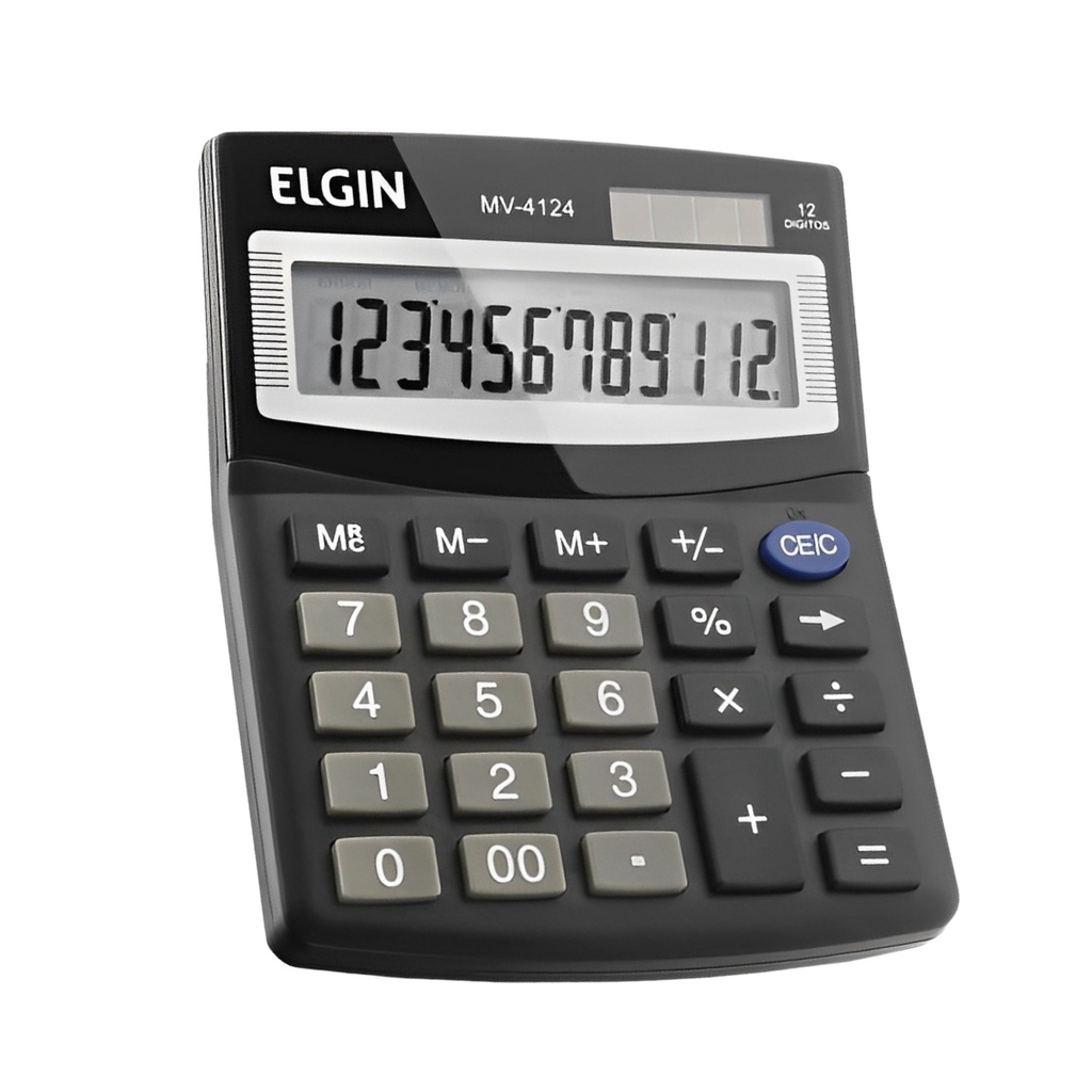Calculadora de Mesa 12 Dígitos Visor LCD Tecla duplo zero Energia Solar e Bateria Desligamento Automático Corrige dígito