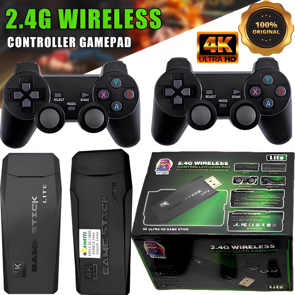 GAME STICK 4K ORIGINAL VERSÃO ATUALIZADA 20 MIL JOGOS com 2 Controles sem fio Console Portátil Jogos retrô Antigos