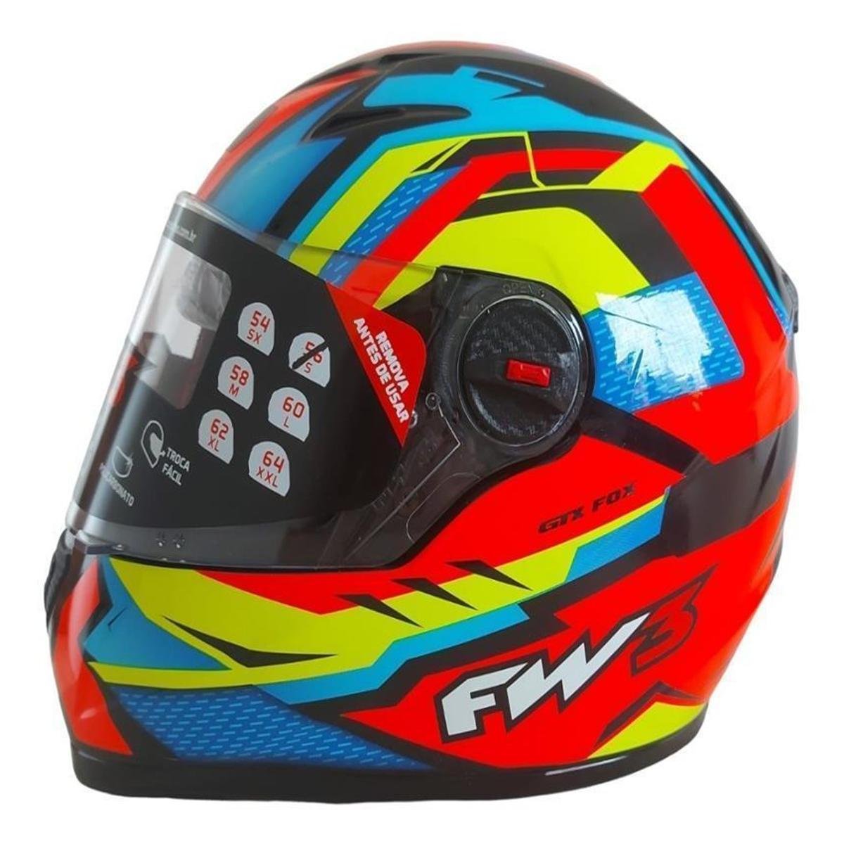 Capacete Moto Fw3 Gtx Fox Colorido Oculos Interno Fechado