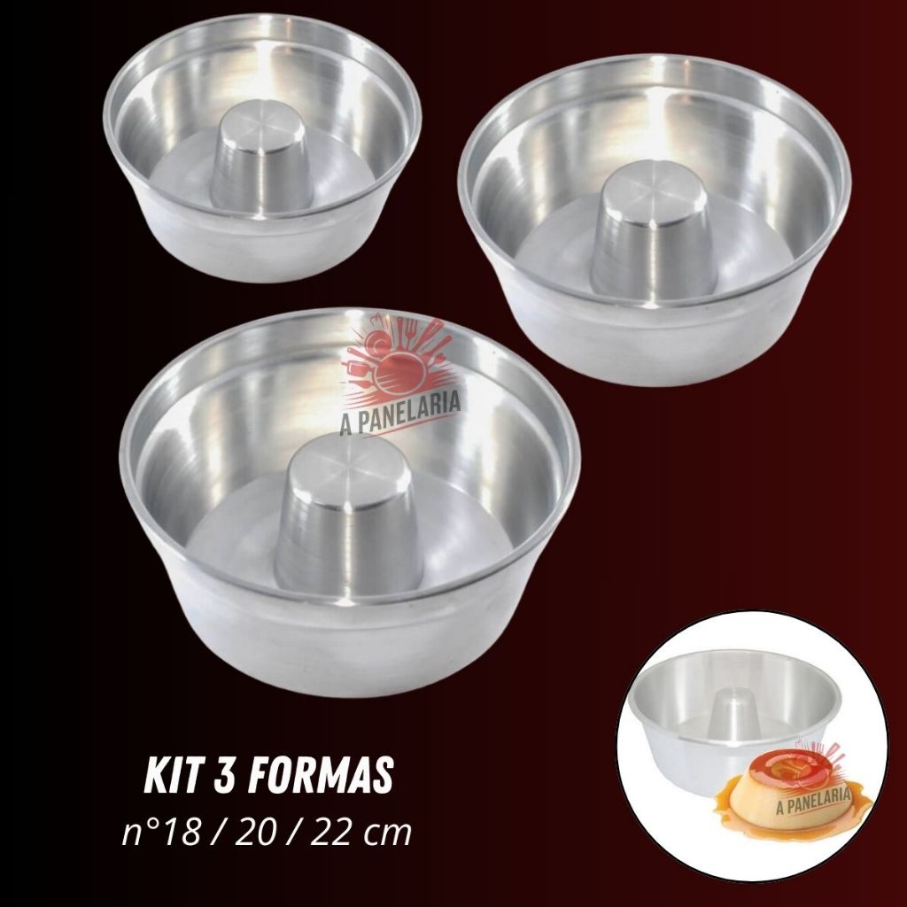 Kit 3 assadeira forma 18 20 22 cm Bolo Pudim alumínio