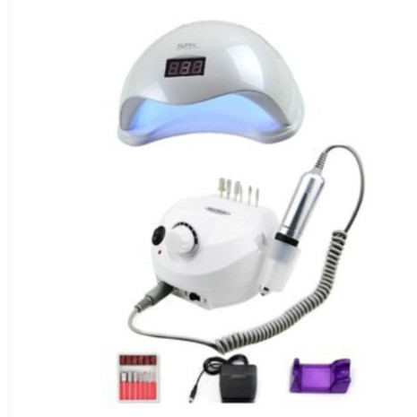 Kit Cabine Sun 5 Led Uv 48w unha + Motor Porquinho Lixadeira de Unhas Elétrica Profissional Nail Drill