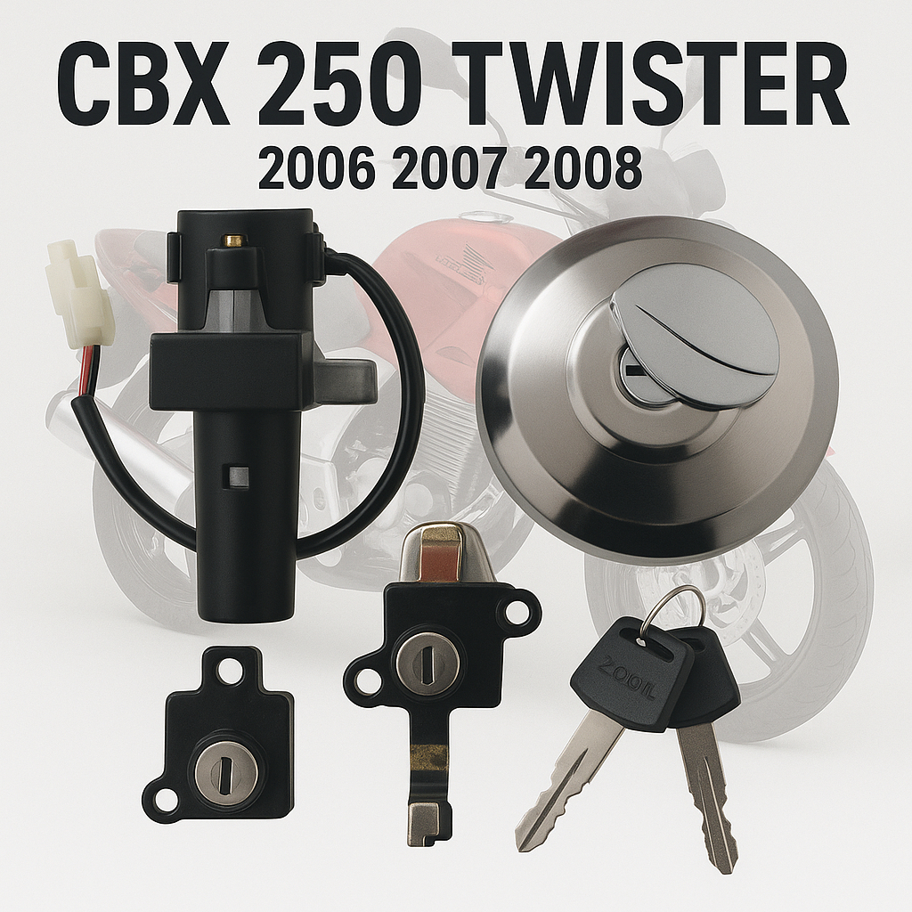 Kit Jogo Chave Contato Miolo Ignição Cbx 250 Twister 2006 2007 2008 C/ Tampa Tanque e Trava Direção