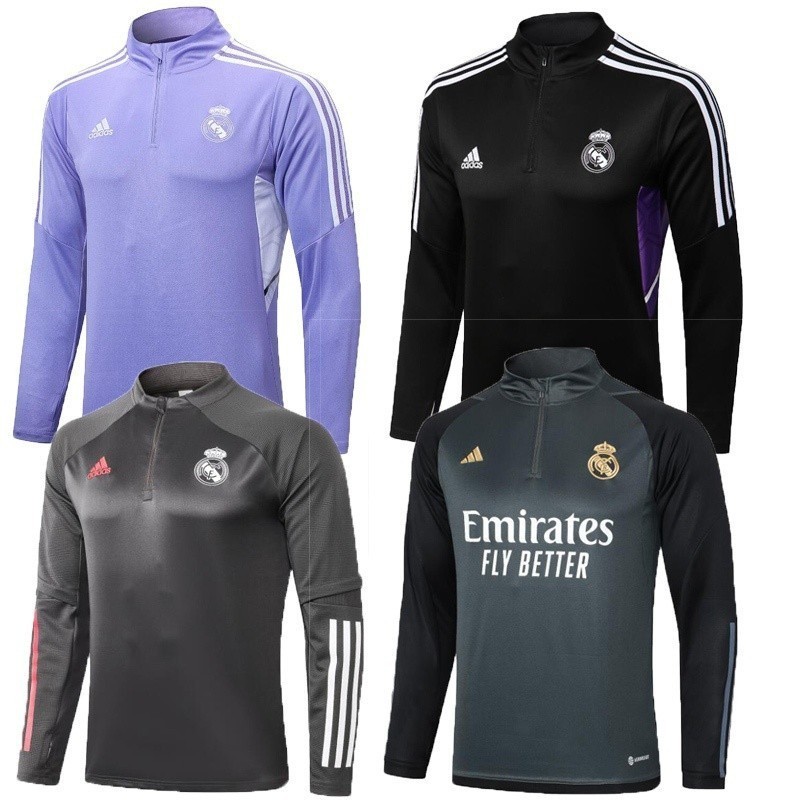 2021 2024 Camisa De Treinamento De Futebol Real Madrid Manga Longa Meio Zíper Da Equipe