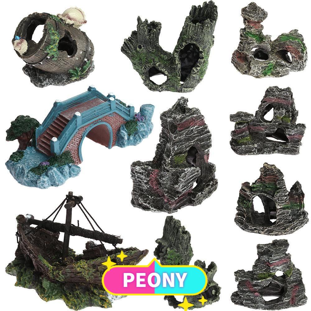 PEONY Rocha Caverna Aquário Ornamento Barril Pet Suprimentos Tanque De Peixe Decoração Resina Artesanato Acessórios Para Paisagismo Afundando Madeira Esconder Casa