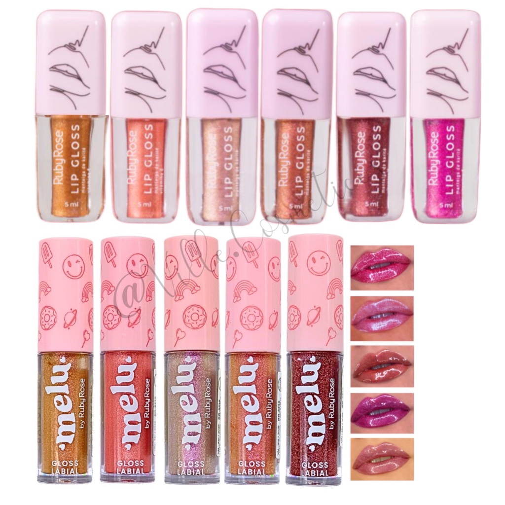 LANÇAMENTO Lip Gloss Ruby Rose com Brilho Gloss Confortavél de Efeito Espelhado e Brilho 2,5ml cada. Gloss com Glitter