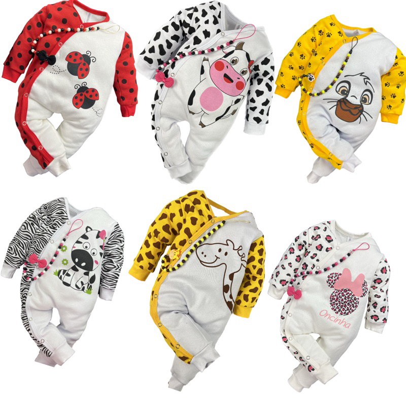 kit Macacão bebê manga longa e curto100% Algodão com prendedor de chupeta/kit menina e menino/prendedor de chupeta