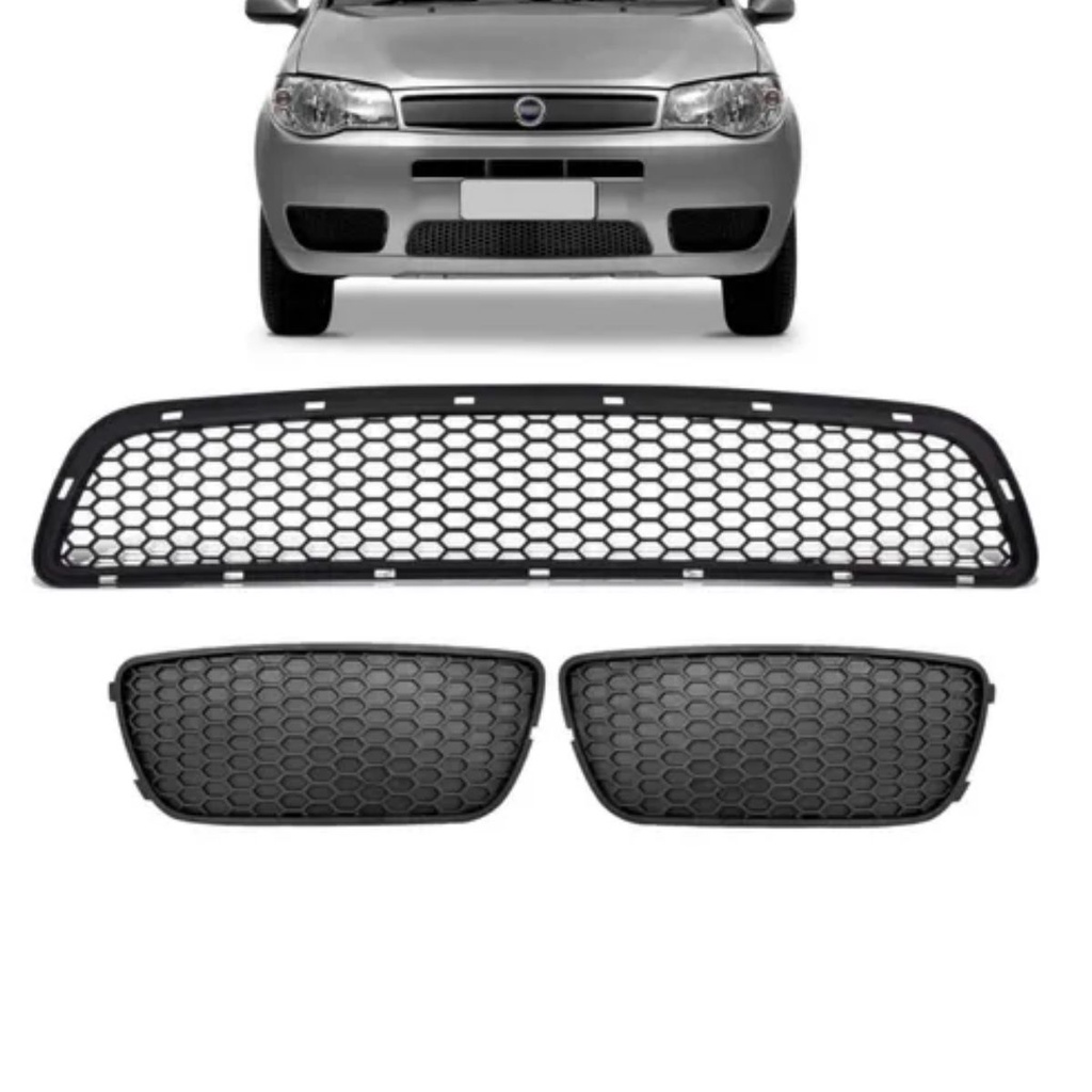 Kit par tela grade moldura Para-choque Palio Siena economy sem furo de milha 2004 2005 2006 2007 2008 2009 2010 2011 2012