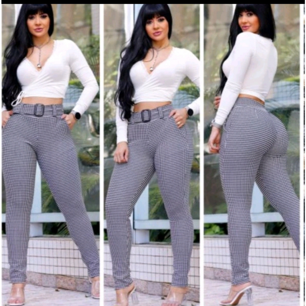 Calça Skinny Cintura Alta Com Lycra Feminina Elastano Cinto Fake Empina Bumbum Roupa Calças Com Bolso Modeladora
