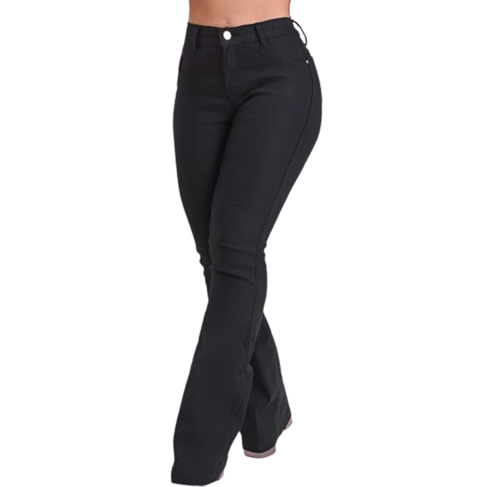 Calça Flare Feminina Jeans Modeladora Cintura Alta Empina Bumbum com Lycra Boca de Sino