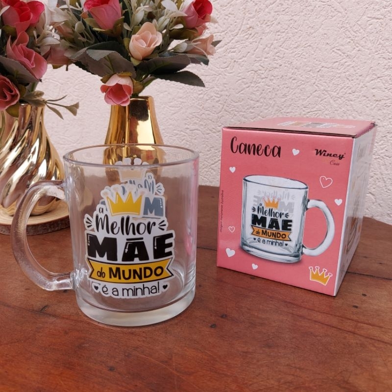 Caneca De Vidro Dia Das Mães A Melhor Mãe do Mundo é a Minha - 320ml