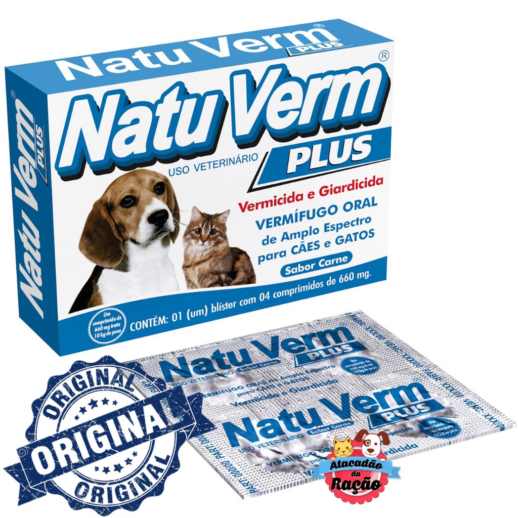 VERMICIDA E GIARDICIDA Natu Verm Plus 660mg 4 Comprimidos Sabor Carne - Vetbras