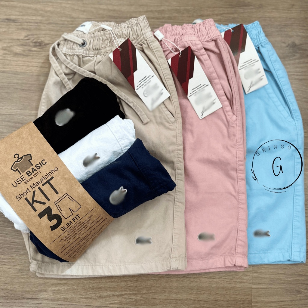 Kit 3 Shorts Masculino Mauricinho Sarja Premium Bermuda Masculina Moda Praia